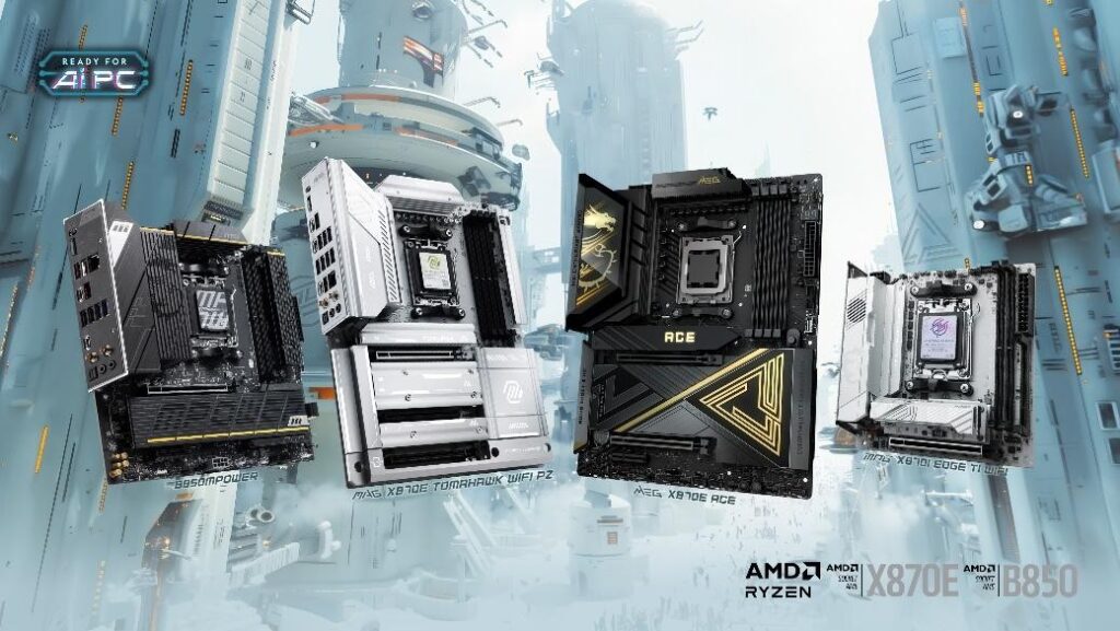 MSI przedstawiło szereg nowych płyt głównych opartych na platformie AM5, w tym flagowe modele MEG X870E ACE i MEG X870E GODLIKE. MEG X870E ACE oferuje 18+2+1-fazowy system zasilania Duet Rail Power z 110A SPS, PCIe i M.2 Lightning Gen 5, Wi-Fi 7, LAN 10G i USB 40 Gb/s. MEG X870E GODLIKE, w połączeniu z procesorem AMD Ryzen 9 9950X3D i kartą graficzną GeForce RTX™ 5090, demonstrował potężne możliwości obliczeń brzegowych z wykorzystaniem modeli językowych, takich jak Deepseek R1 70b.